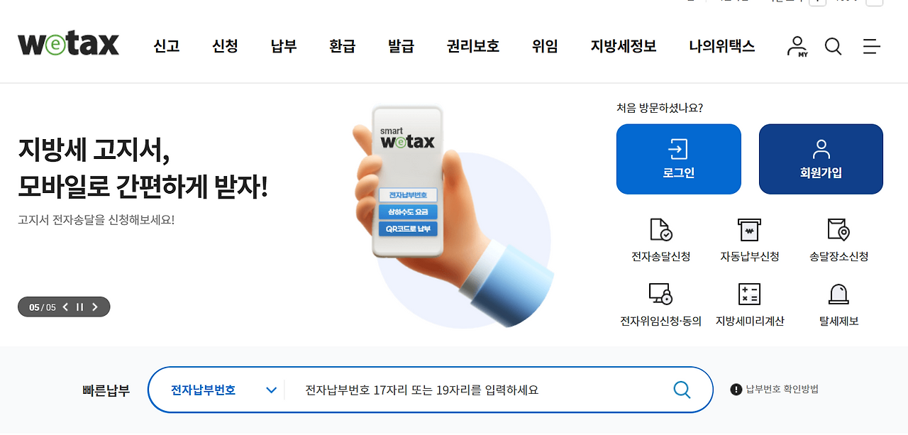 - WETAX 홈페이지(www.wetax.go.kr) 또는 서울시민은 ETAX(etax.seoul.go.kr) 접속